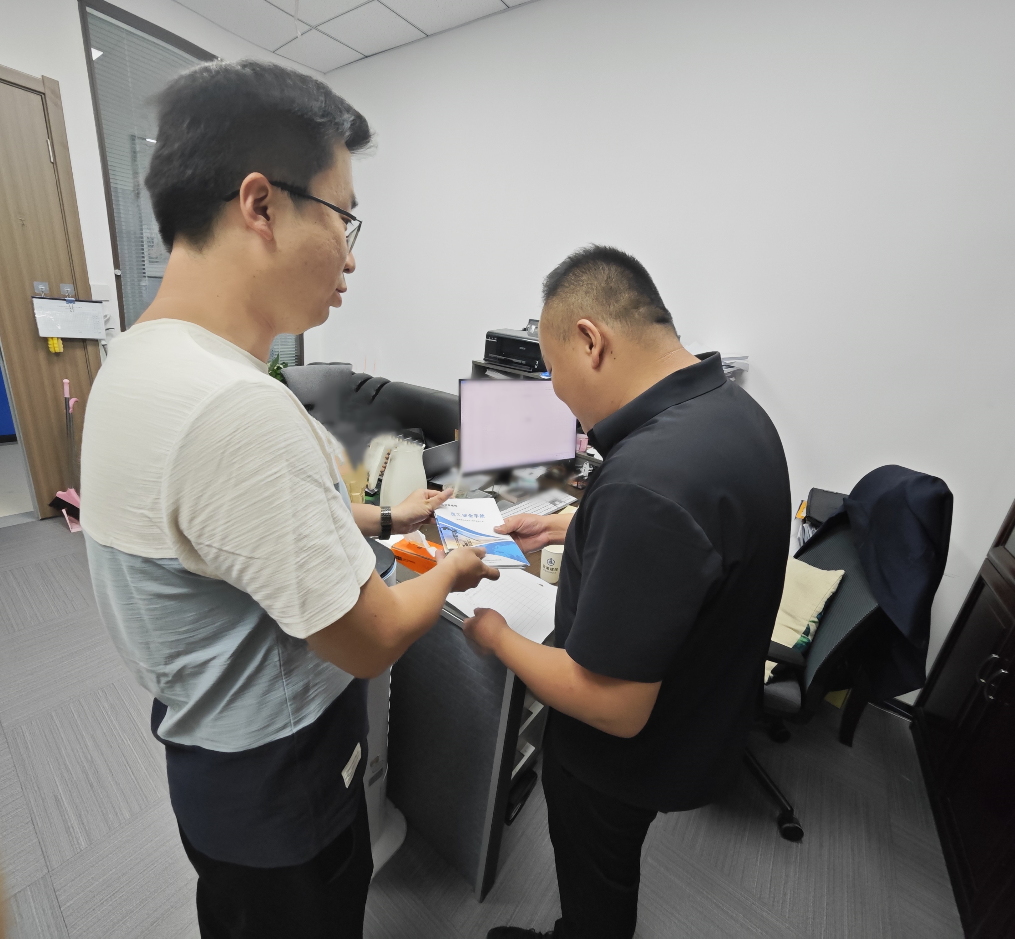 此次檢查主要針對培訓中心中鹽大廈總部辦公場所及實訓基地辦公設(shè)備、用水用電、培訓設(shè)備等。檢查組逐個查驗辦公場所及實訓基地用水用電、特種作業(yè)設(shè)施設(shè)備用電等情況,重點對施工升降機、附著式腳手架、塔吊及焊機的隱患和在培訓過程中使用是否規(guī)范、消防設(shè)備是否配套齊全以及人員安全知識掌握等情況進行詳細檢查,對發(fā)現(xiàn)問題責令立即整改,同時就消防安全知識、注意事項及相關(guān)應急處置措施等發(fā)放員工安全手冊進行宣傳,進一步提高員工的消防安全意識和自防自救能力,引導公司各部門開展安全自查、防患未然。